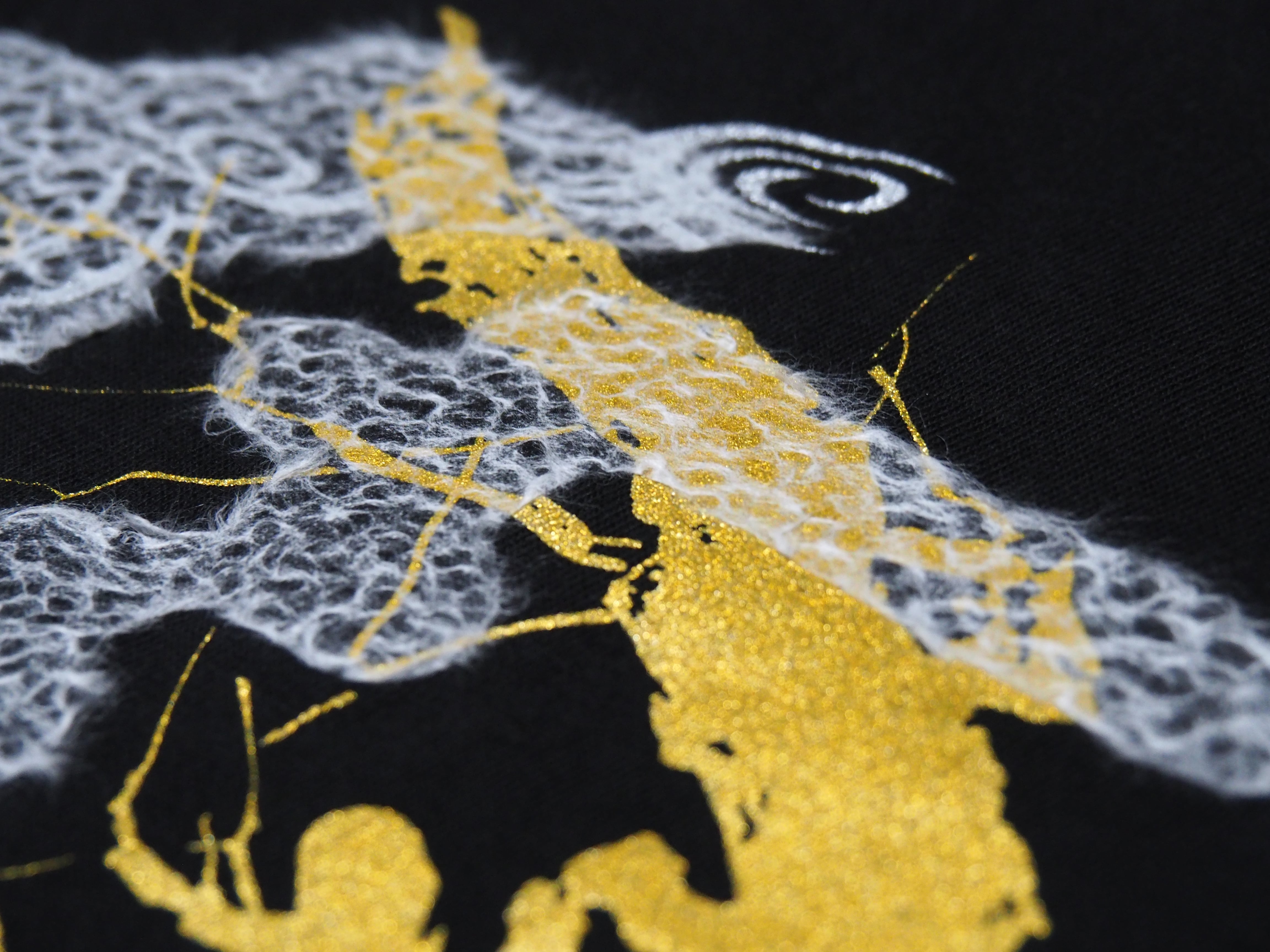 UKIYO ORCHESTRA ニューアルバム n.u.e のアートディレクションを務めてくださった国際的に活躍されている梶岡享氏による豪華アートワークを転写した浮世の空気が漂うゴールドとシルバーの世界。